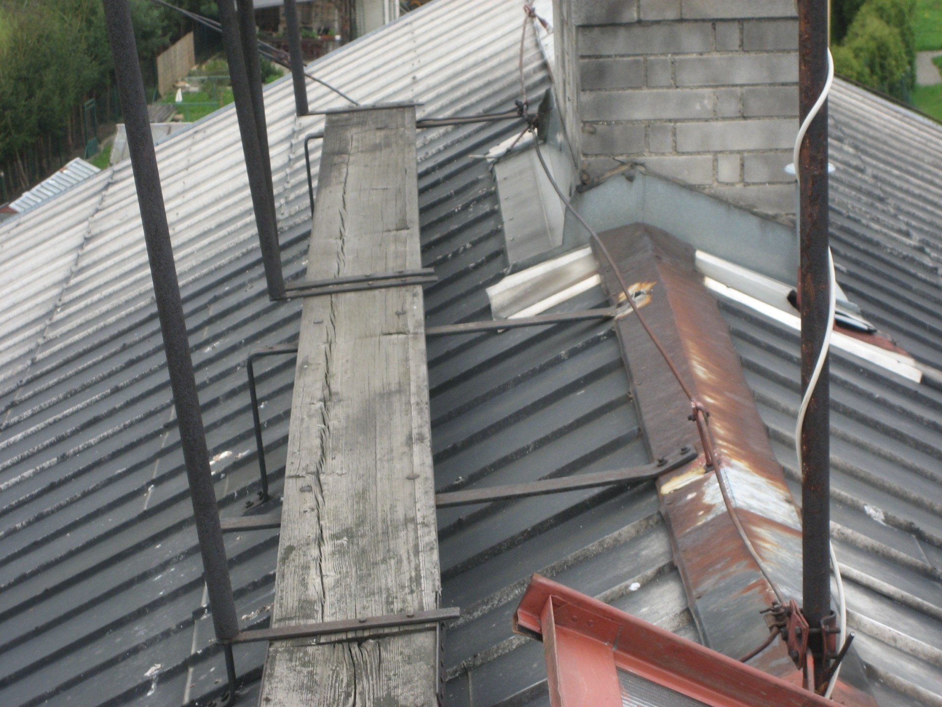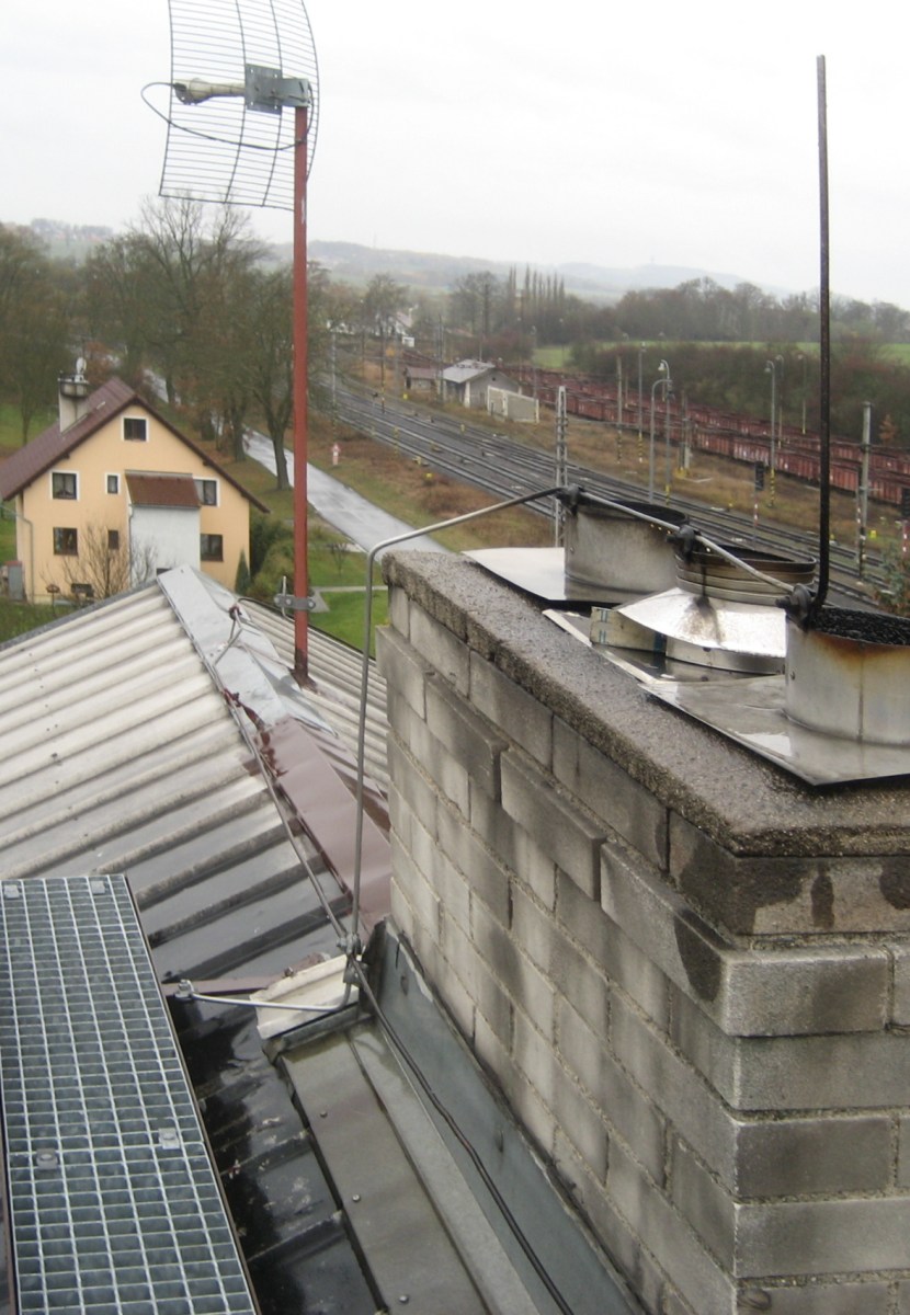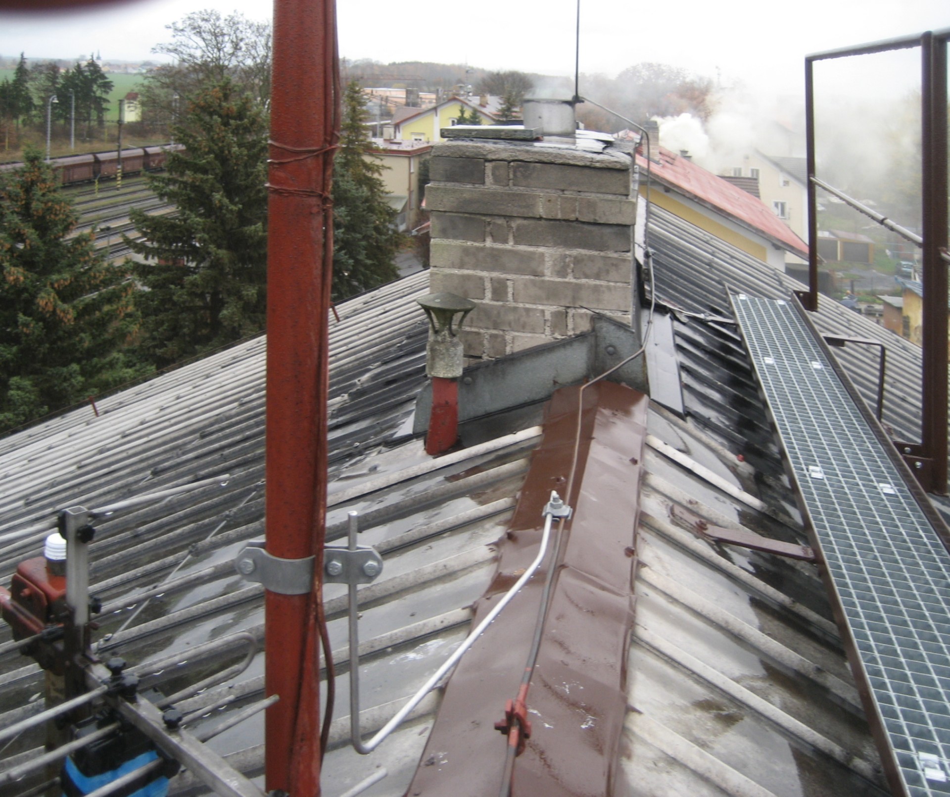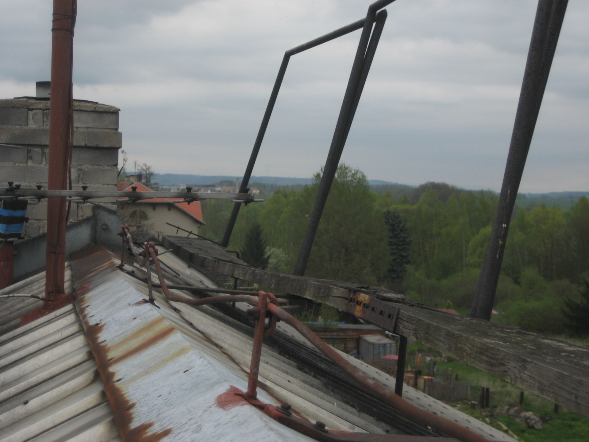 5. Komínová lávka a stav hromosvodu / před a po rekonstrukci - komínová lávka svépomocí, oprava a revize hromosvodu fi. Blesk Krištofovič z Chebu.