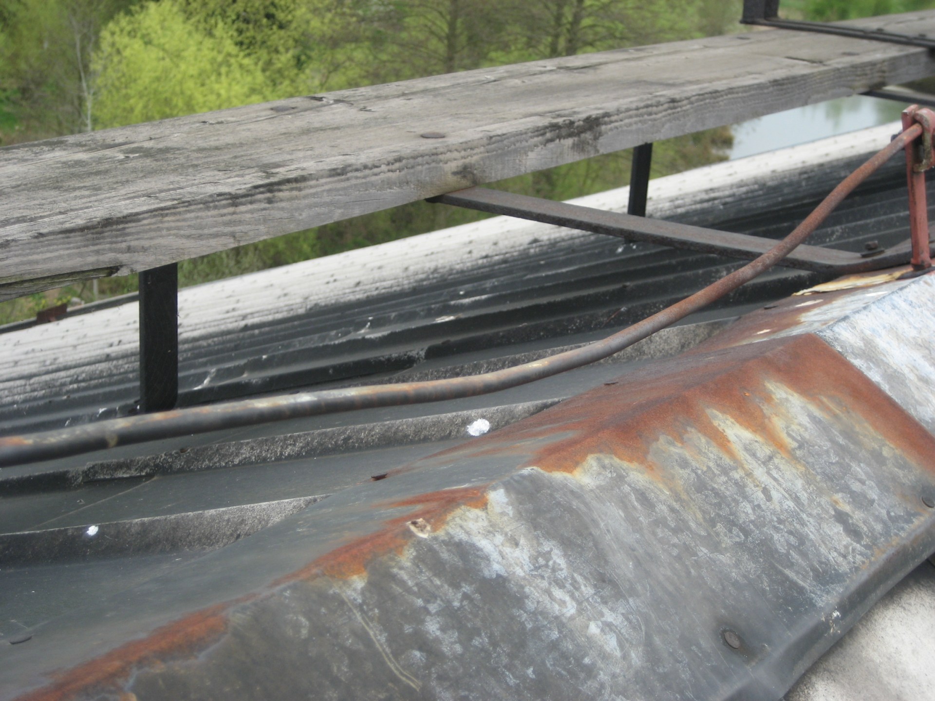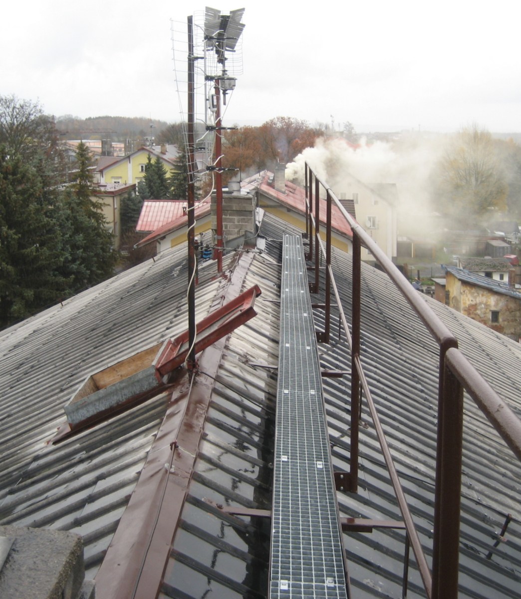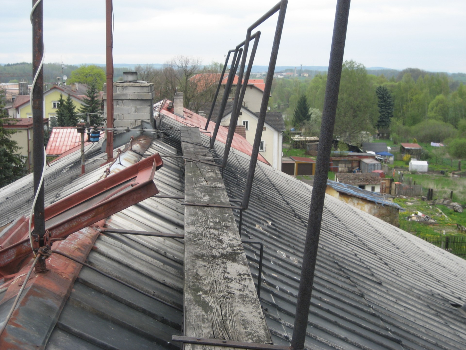5. Komínová lávka a stav hromosvodu / před a po rekonstrukci - komínová lávka svépomocí, oprava a revize hromosvodu fi. Blesk Krištofovič z Chebu.