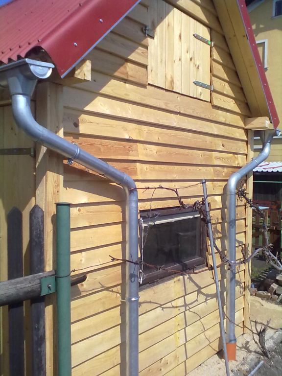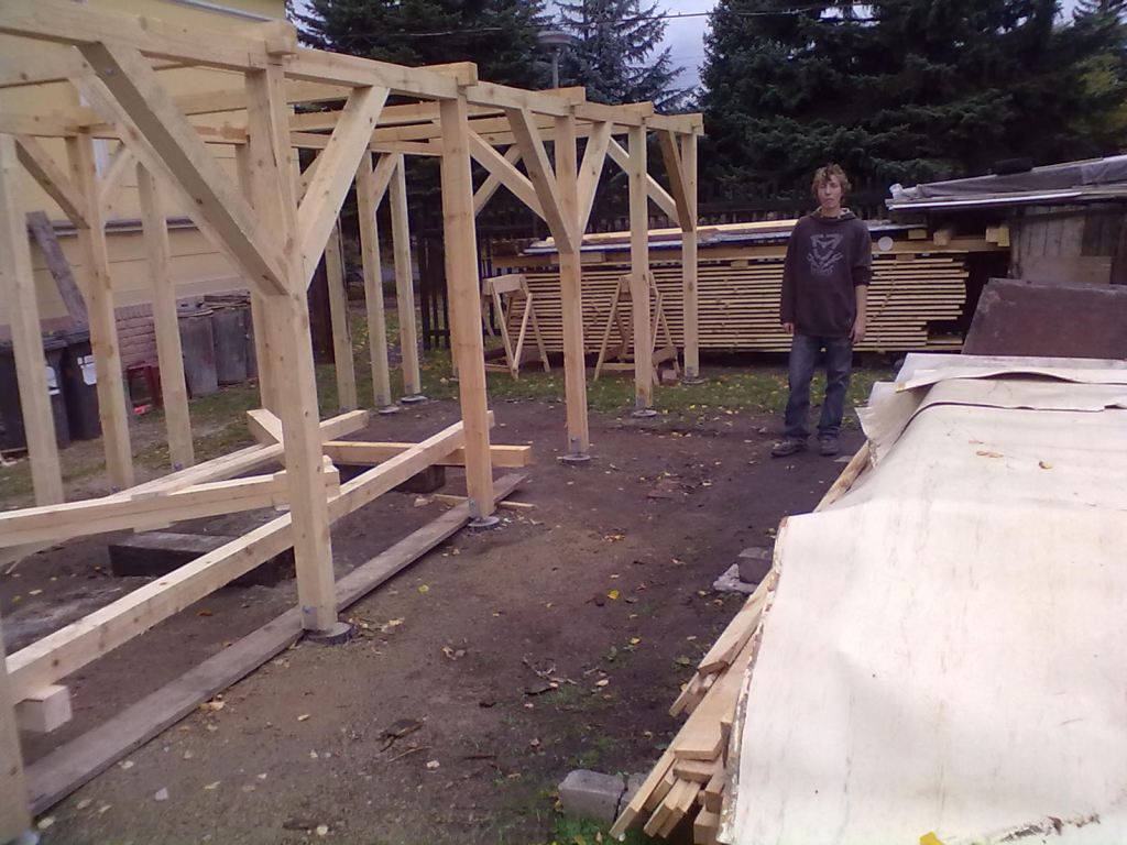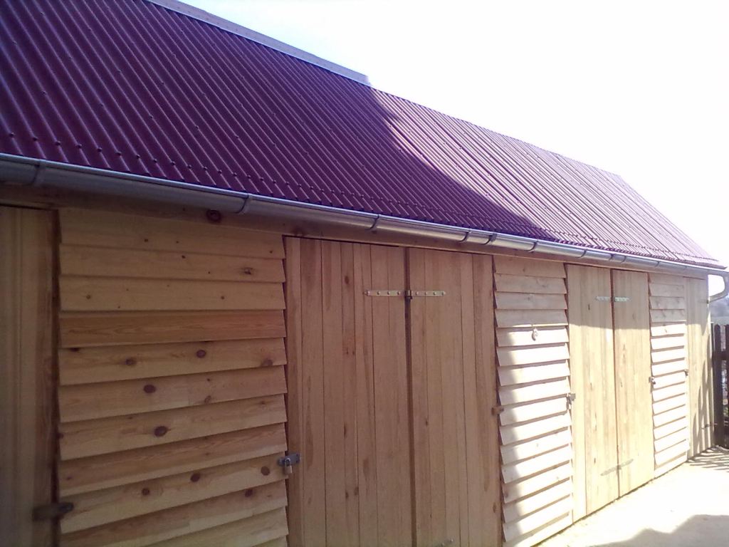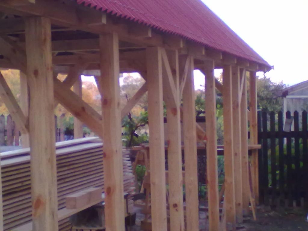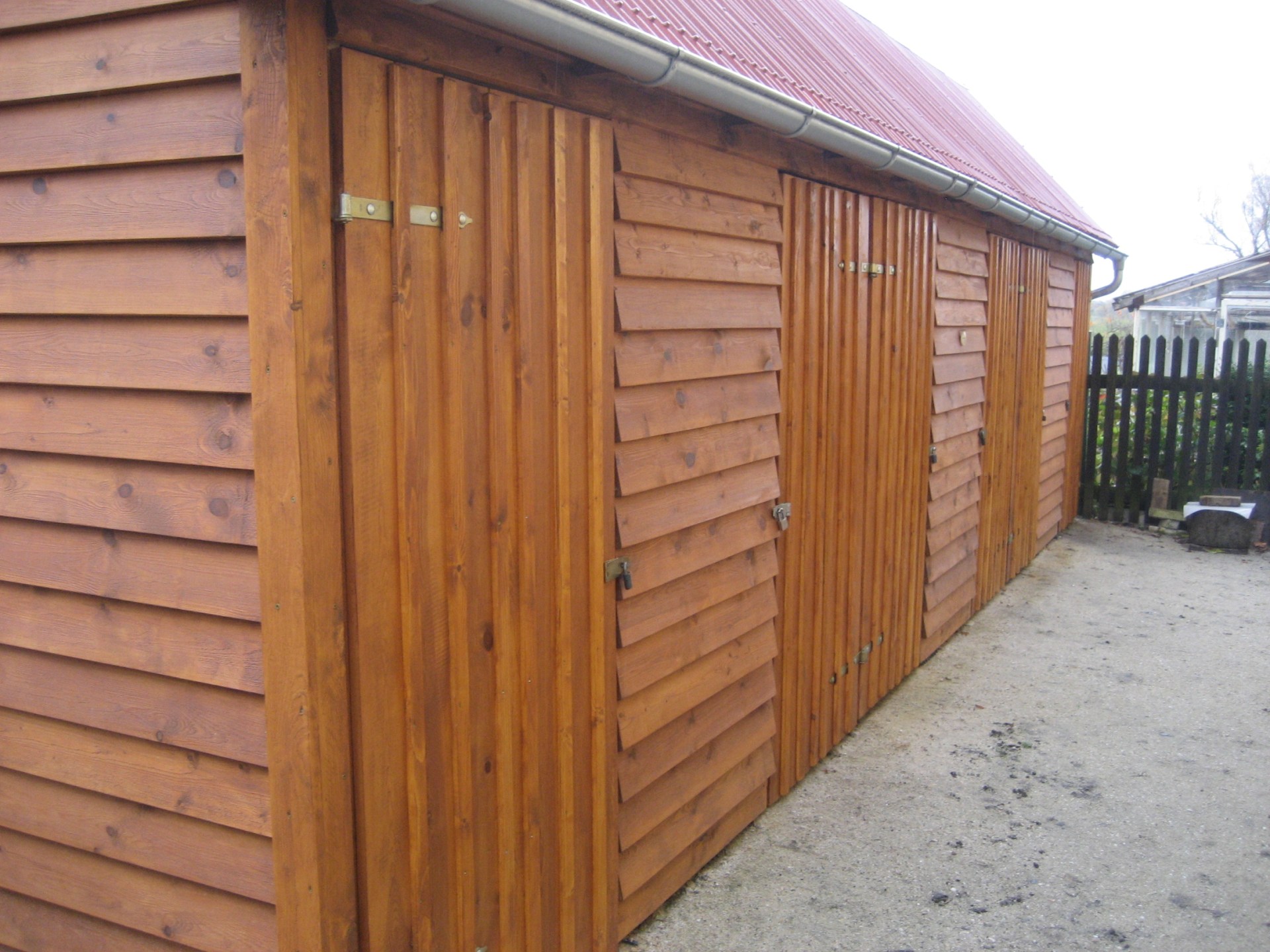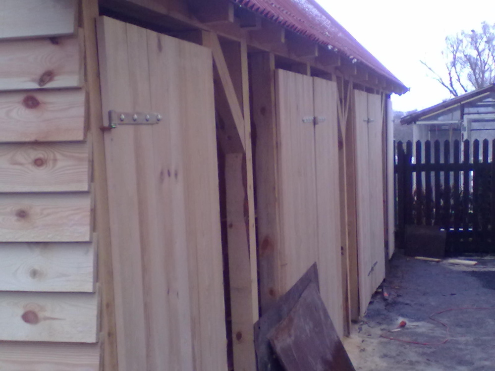 3. Výstavba nové kůlny (se 6 kójemi) = svépomocí. / Poslední 4 snímky - po konečném nátěru olejovou lazurou.
