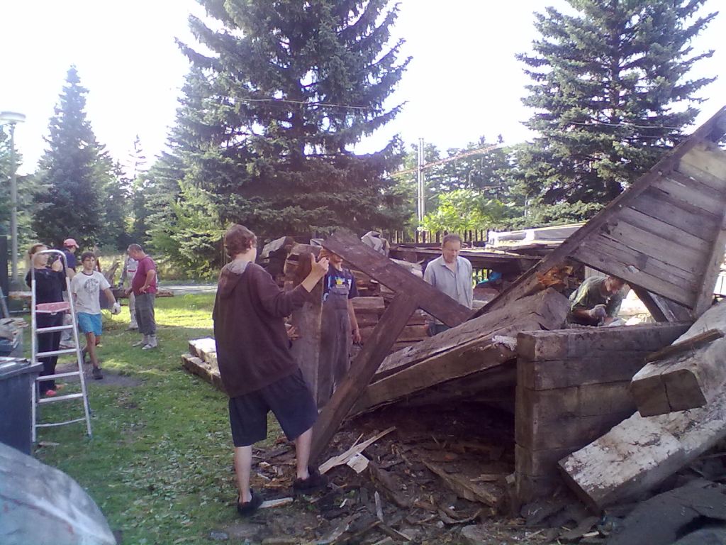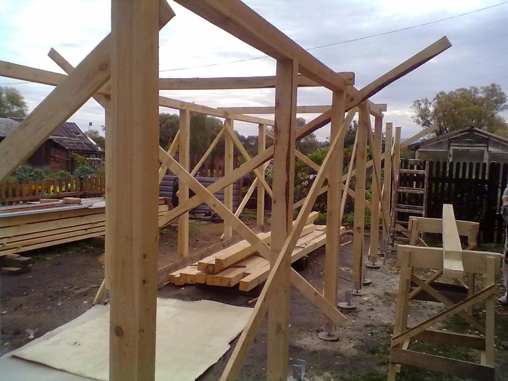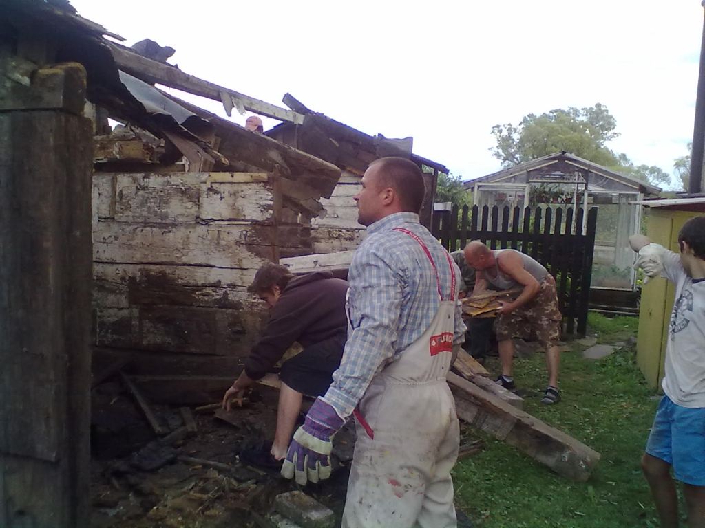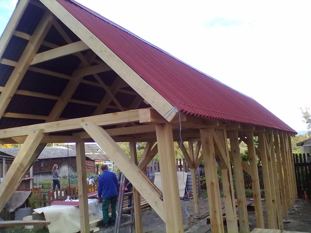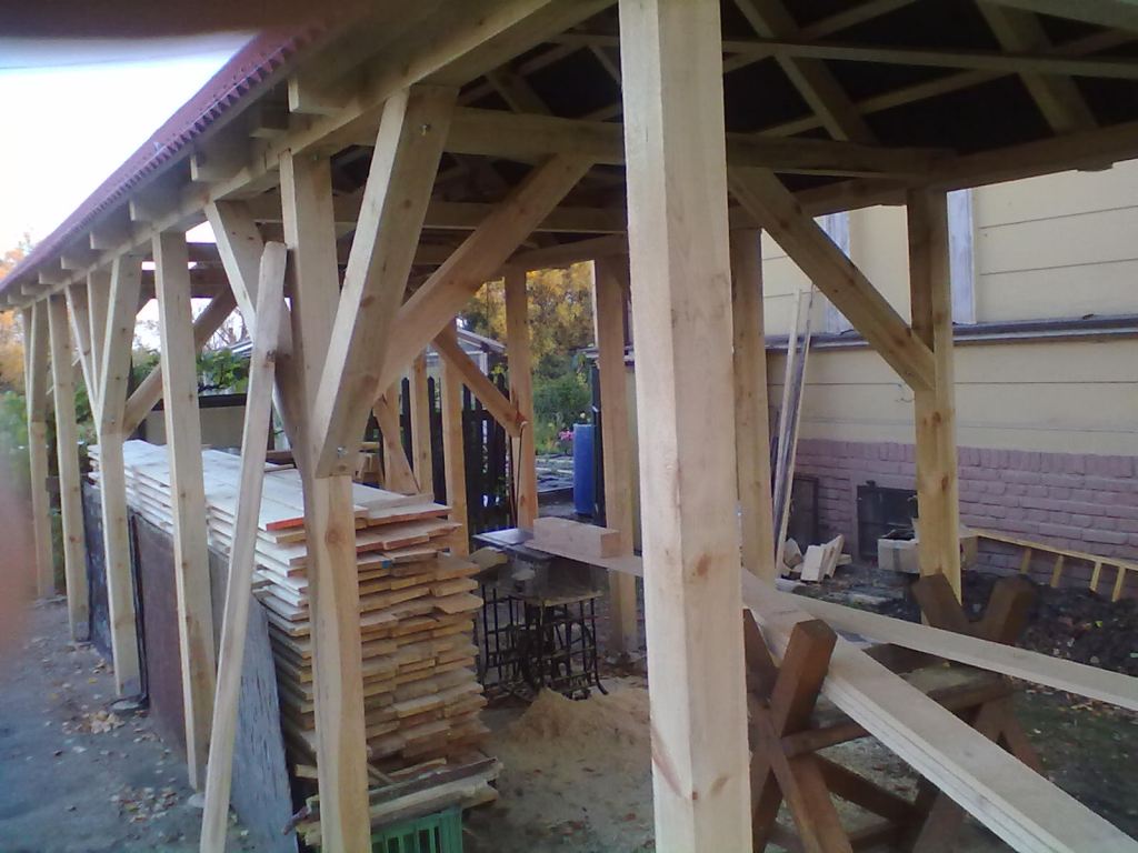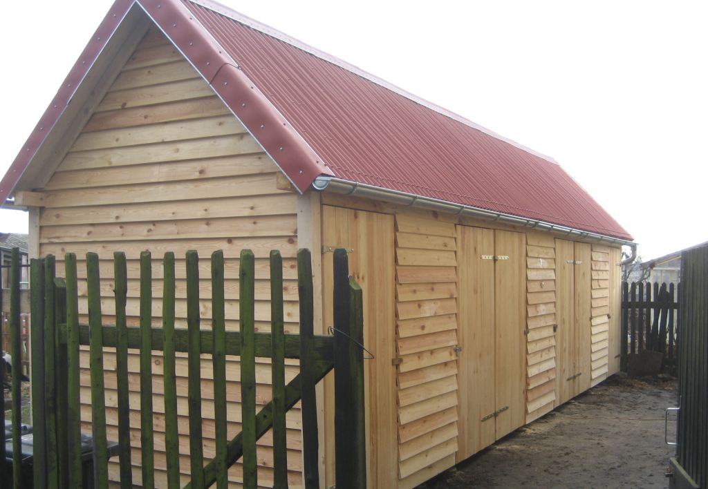 3. Výstavba nové kůlny (se 6 kójemi) = svépomocí. / Poslední 4 snímky - po konečném nátěru olejovou lazurou.