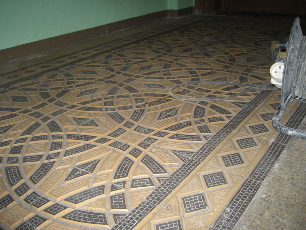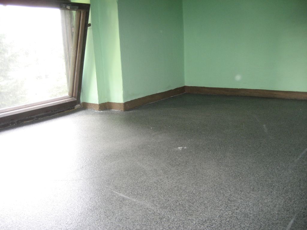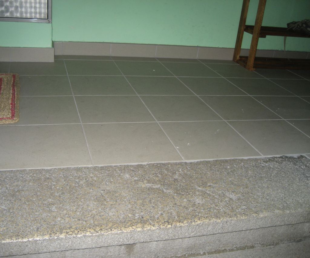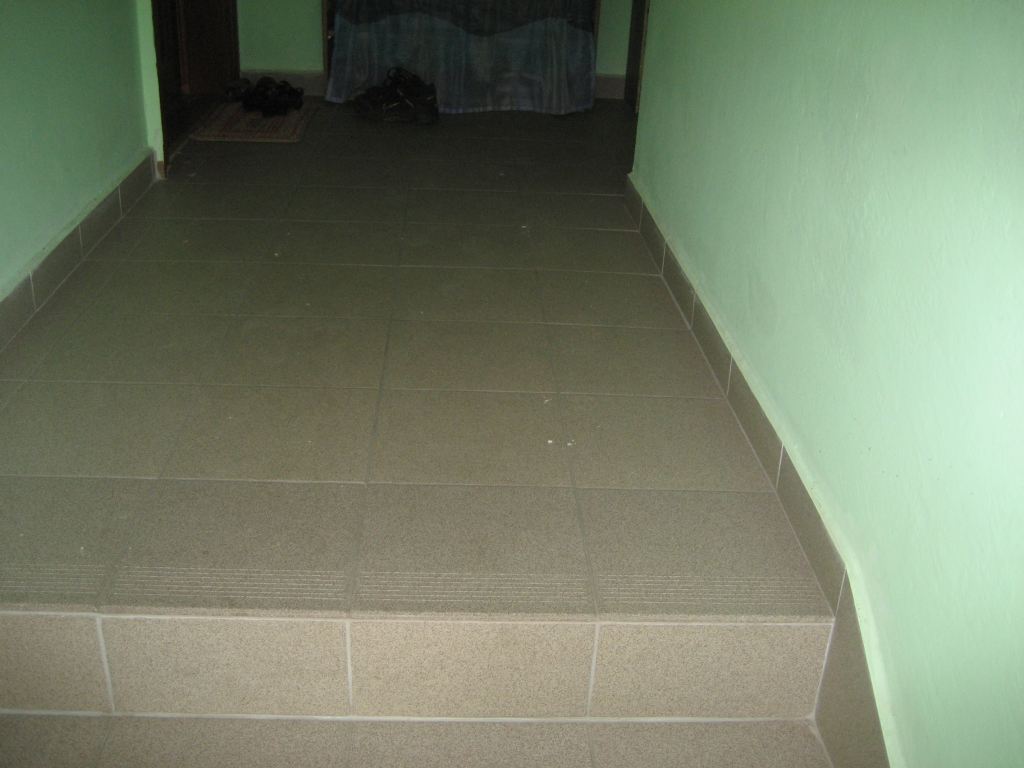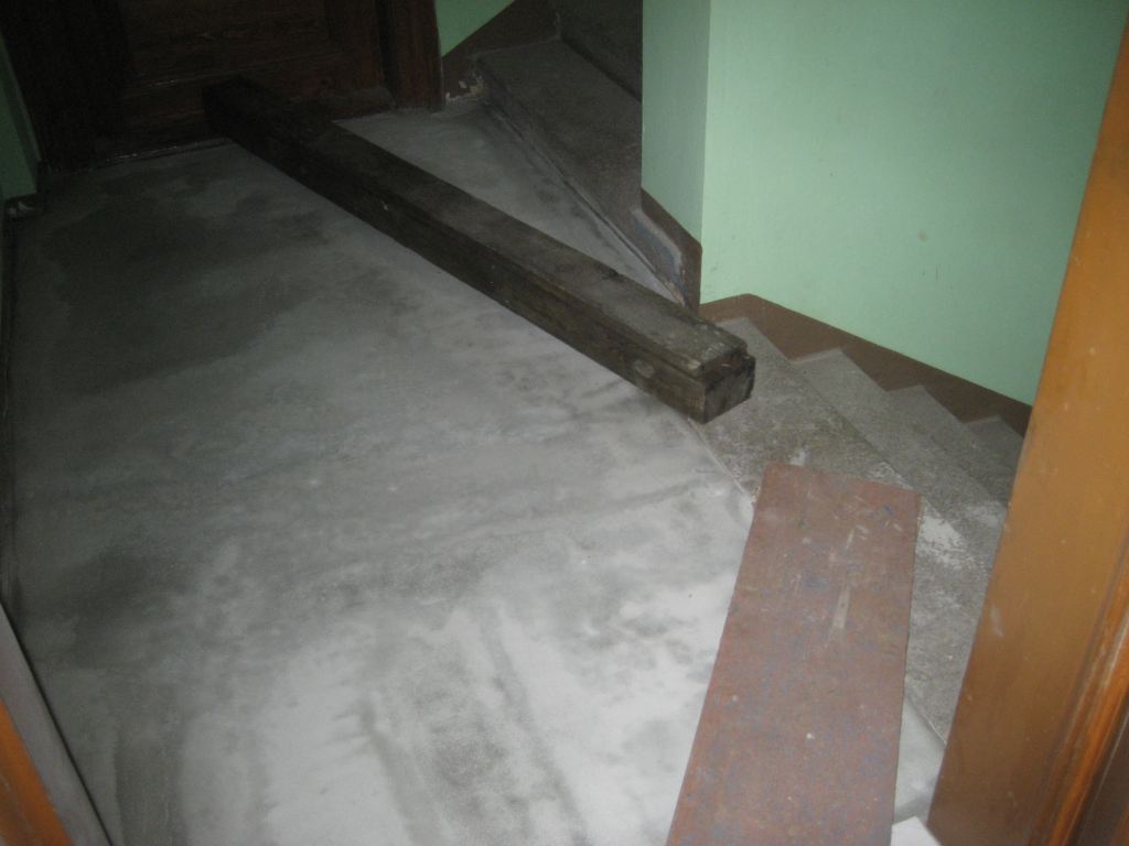 4. Výměna obkladu dlažby podest u bytů v 1. a 2. poschodí. V obou mezipatrech byla podlaha opatřena litou epoxidovou stěrkou. Provedeno firmou Nesládek z Chebu.